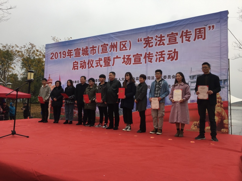 为贯彻落实中央关于深入学习宣传和贯彻实施宪法的部署,推动全社会进一步树立宪法意识,12月1日上午,在第六个“国家宪法日”来临之际,宣城市2019年“宪法宣传周”启动仪式暨“12.4”国家宪法日广场集中宣传活动在宛陵湖法治文化广公园举行。学院文法系主任李世军老师、获奖选手夏建圩老师、王铁梅同学及部分志愿者参加了本次活动。