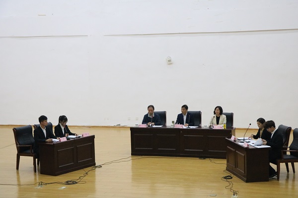 11月17日晚7点,文法讲堂——“模拟法庭比赛及法庭庭辩实务讲座”在大学生活动中心大报告厅准时举行。安徽明泉律师事务所合伙人桂林律师作为本次特邀评委出席活动,文法系钟娟老师和系主任李世军老师担任另外两名评委。2017级学生宋沁怡、刘昕帅、万鑫、秦源参与此次模拟法庭辩论,分别担任上诉人代表与被上诉人代表。2018级学生徐乐童担任主持,17、18、19级法学专业学生参与活动。本次活动分为两部分,第一部分为模拟法庭比赛,第二部分为法庭庭辩实务讲座。