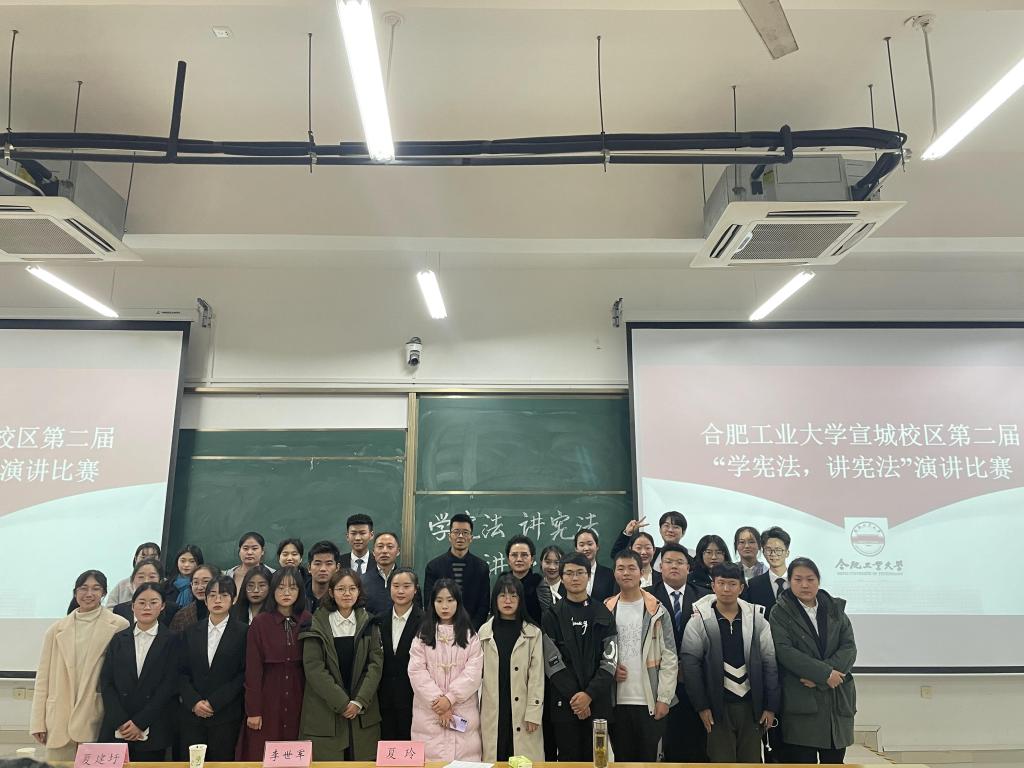 开展一次宪法演讲比赛。12月4日晚,合肥工业大学宣城校区第二届“学宪法,讲宪法”演讲比赛在新安215教室顺利举办。文法系主任李世军老师、文法系副主任夏建圩老师和文法系副教授夏玲老师出席了本次活动,法学2020级、2021级全体同学观看了本次比赛。参赛选手们声情并茂地讲述了自己与宪法的故事,引起了台下观众的热烈反响。在所有选手演讲完毕后,夏玲老师对比赛进行了总结并寄予法学专业同学殷殷厚望,强调了法科生身上的责任感与使命感。