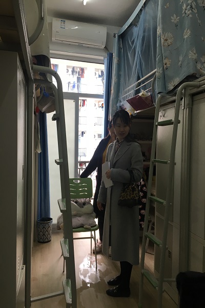 詹老师与5名寝室检查小组同学走访了男女生宿舍楼共18个寝室,根据《合肥工业大学研究生住宿管理办法》,对照《学生寝室安全卫生检查表》,针对研究生寝室卫生、安全尤其是违规使用电器及危险用品等情况进行了认真检查和记录。由于研究生寝室今年暑期新装修过,詹老师还关切询问学生居住是否适应,有无其它生活需要等,让同学们感到非常暖心。检查发现研究生宿舍整体情况比较好,寝室基本都干净整洁,无使用大功率电器、私养宠物、使用明火等违规现象。