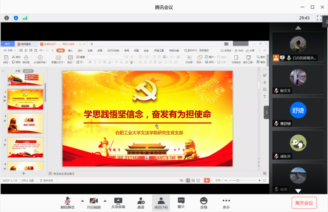 此次线上组织生活会,党支部成员分享了身边的感人故事,体会到哪里有疫情、有群众,哪里就有英雄的先锋模范作用。初心永不忘,使命肩上扛,当群众需要的时候,无数党员冲锋在前,肩负更多责任,积极投身战场,守好阵地,众志成城,攻坚克难,奋力诠释“疫”线使命,勇担重任,彰显战胜疫情的决心。青年一代党员更应该发扬无私无畏精神,坚定入党信念,永葆入党初心,以一名共产党员应有的责任和担当,走前头、作表率,充分发挥共产党员的先锋模范作用。