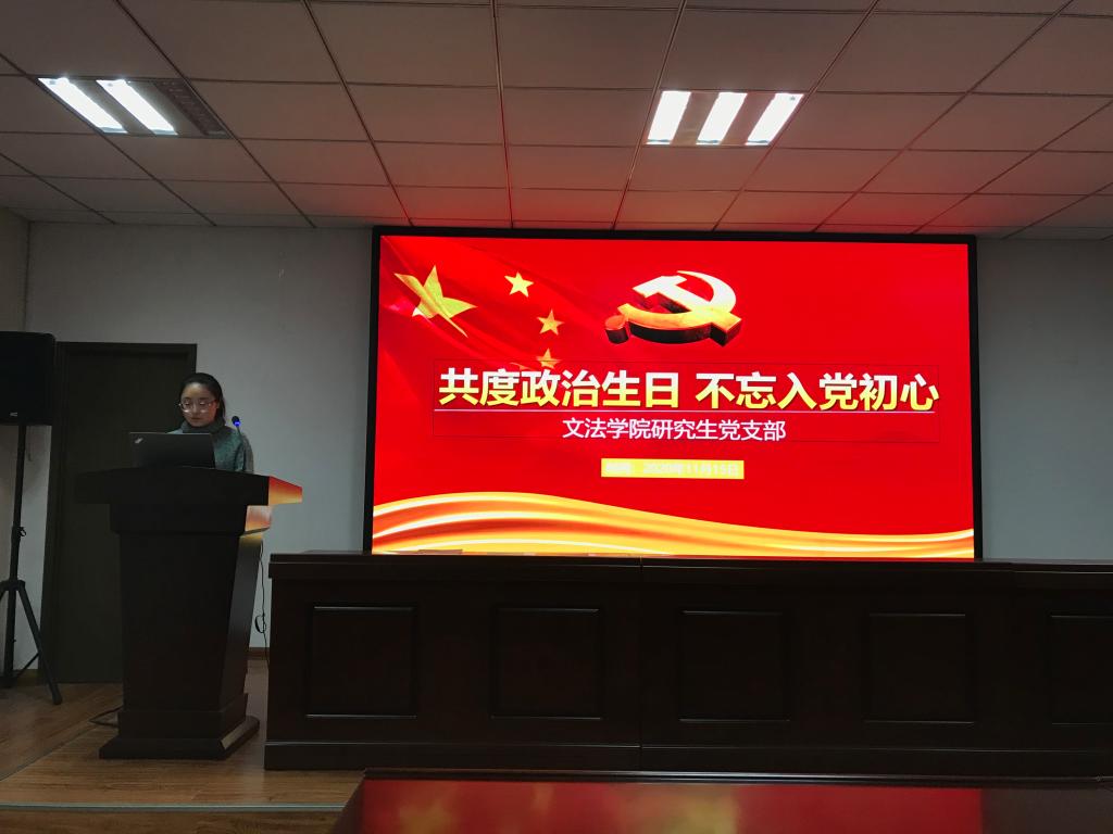 11月15日,金沙集团wwW3354CC研究生党支部在金沙集团wwW3354CC楼509会议室,为11月入党的陶天蓉、张赛君、闫雪菲同志集中过“政治生日”。活动以“四个一”的形式开展:重温一次入党誓词,赠送一张生日贺卡,唱一首红歌,发表一次生日感言。