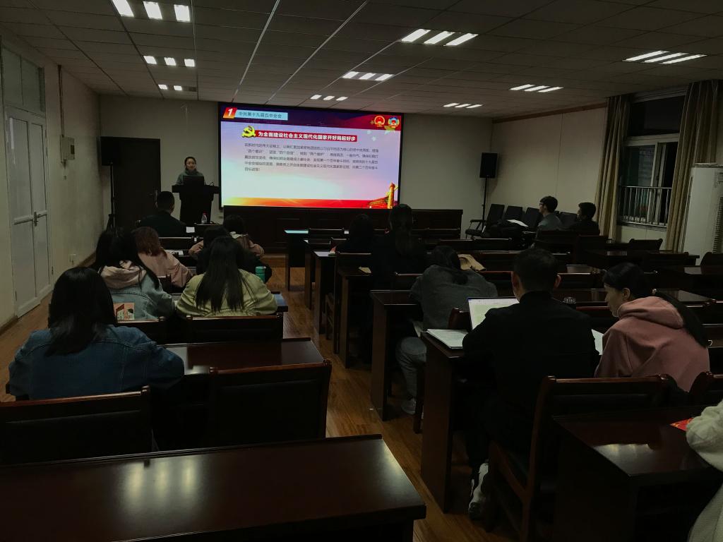 2020年10月28日至31日,中国共产党第十九届中央委员会第五次全体会议在京召开。中央委员会总书记习近平作重要讲话。为贯彻落实“十九届五中全会”精神,金沙集团wwW3354CC研究生党支部于学院509教室举办了专题理论学习会议。