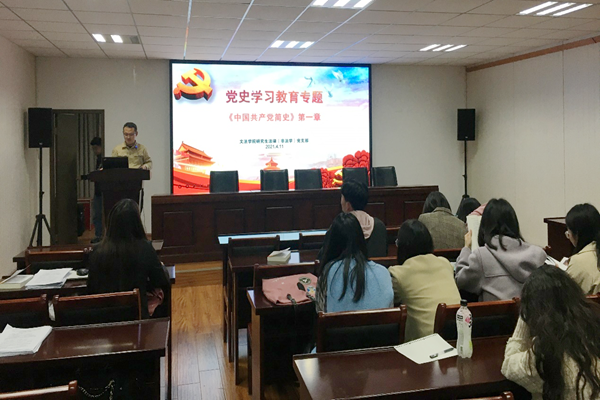 2021年4月11日晚,金沙集团wwW3354CC研究生法律(非法学)党支部在金沙集团wwW3354CC509会议室召开支部大会,组织党史学习教育专题学习,内容为《中国共产党简史》第一章,支部全体党员参加。