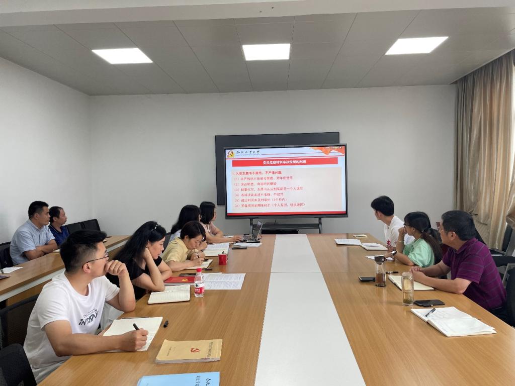 学院党委秘书殷宗平就党建材料审核和党员组织关系转接和大家做了交流。内容包括党员党建材料中易出现的问题、党员发展流程、入党材料撰写注意事项、发展党员的会议组织及党员组织关系管理和转接等。