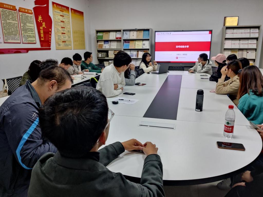 分享交流会在学院310、410、509会议室进行,2021级全体本科生、研究生以及学院全体学生党员参加,其中五名优秀学生党员从学习规划、考研、法考、实习、论文写作发表等方面作主题经验分享。胡文文同学面对大一同学,从早做自我规划、严格目标执行、持续自我提升三个方面介绍了本科学习经验,详细分享了自己的推免经验。董宇婷同学向大一同学介绍了考研经历,从考情分析、备考资料推荐、复习进度安排、报考院校选择等方面分享,鼓励大家在学习中合理调节压力、排除外界干扰。黄雪迎同学针对本人法考经历进行了分享,她从考试报名、机考准备、主观题复习事项、考试心态调节等方面和在场同学详细交流,鼓励大家只要付出必会有汇报。廖晓滨同学就专业实习展开分享,他从律所求职与面试、诉讼与非诉业务对比、公司制与传统所区别等方面介绍律师行业现状和律所实习经验,强调大家要高效利用课余时间,丰富实习或科研经历。张玉龙同学从本人论文写作发表谈起,劝诫同学们一定要保持信心,克服习得性无助,积极主动紧跟导师请求指导,主动钻研前沿研究课题,好学肯干,大胆去做,必能取得理想成就。