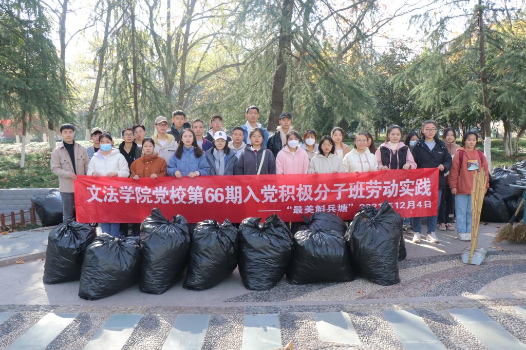 学院于12月4日上午在斛兵塘举行党校第66期大学生积极分子班劳动实践活动,主要活动任务为清扫落叶,美化校园环境。学院党校积极分子培训班成员参加。