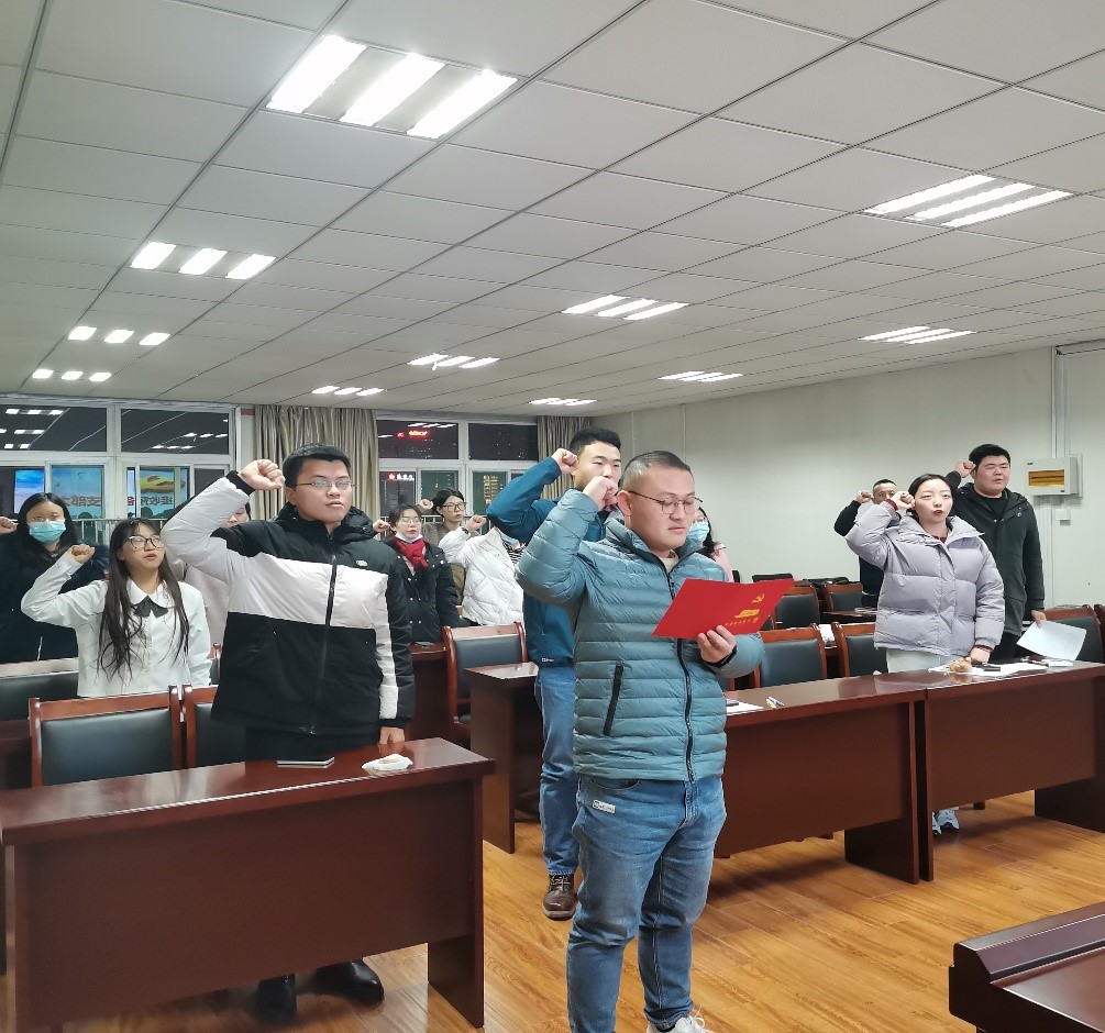 最后,成东升带领新发展预备党员面向党旗进行庄严的入党宣誓,与会党员重温入党誓词。