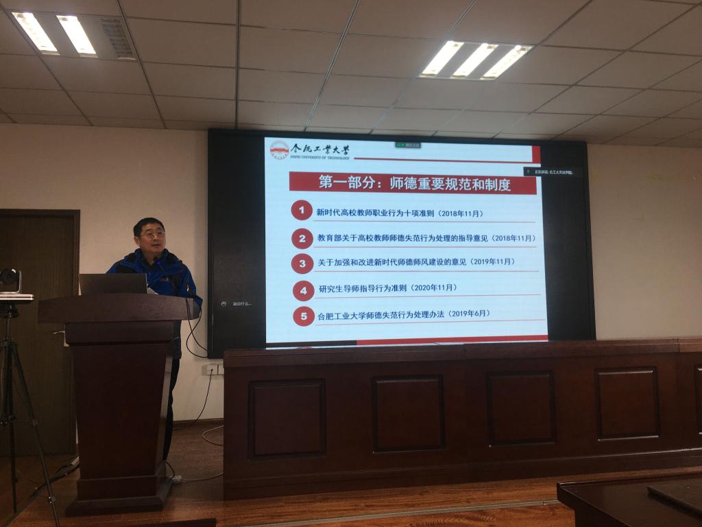 会上,李金华书记介绍了师德重要规范和制度,重点解读并带领大家一起学习《新时代高校教师职业行为十项准则》《研究生导师指导行为准则》及《合肥工业大学师德失范行为处理办法》。