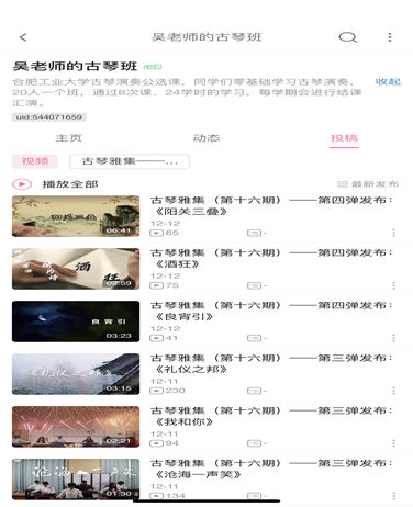 云雅集在B站展现音乐作品,小组成员自行编排曲目,设计剧本并进行拍摄制作。雅集的曲目不仅有传统的古琴曲,如《仙翁操》、《阳关三叠》等,亦有现代移植曲目如《礼仪之邦》等十二首作品,古今交融、礼乐相成,让古琴在千年后的今天依旧流动着新鲜的血液,蓬勃着盎然的生机。在视频制作过程中,选景、服化、拍摄、录音、后期制作等皆由各个小组成员分工协作完成。这样即充分发挥了同学们的自主能动性,增进琴班同学的交流和感情,又发掘了古琴与传统文化的魅力,让传统文化在创新中得到传承。