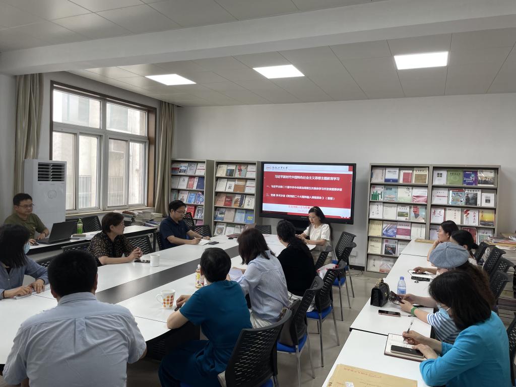 人文与传播系党支部于6月7日下午深入学习贯彻习近平总书记关于主题教育的系列重要讲话和指示批示精神,把加强党的创新理论武装作为重中之重,坚持读原著学原文悟原理,教育引导教师们从思想上正本清源、固本培元,深刻领悟“两个确立”的决定性意义,坚决做到“两个维护”。