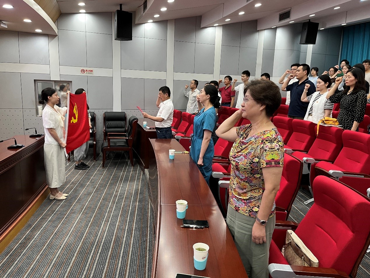 会上,全体师生党员开展了“迎七一、重温入党誓词”活动。党员在学院党委书记李金华的带领下,面对鲜红的党旗,高举右拳、庄严宣誓。铿锵有力的宣誓,表达了大家对党的无限忠诚、热爱和听党话、跟党走的坚定决心。