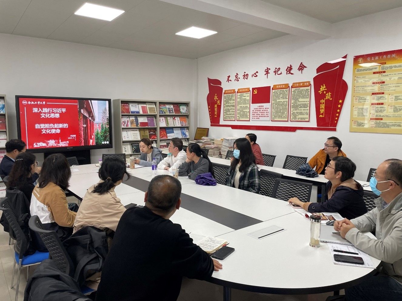 最后,支部宣传委员何孟桓老师讲授了微党课《深入践行习近平文化思想 自觉担负起新的文化使命》。宣传思想文化工作事关党的前途命运,事关国家长治久安,事关民族凝聚力和向心力,是一项极端重要的工作。习近平文化思想是新征程上我们党的文化旗帜,为担负起新的文化使命、开创宣传思想文化工作新局面指明了前进方向、提供了根本遵循。习近平文化思想主题鲜明、体系完备、逻辑严密、博大精深,是新时代党领导文化建设实践经验的理论总结,在党的宣传思想文化事业发展史上具有里程碑意义。