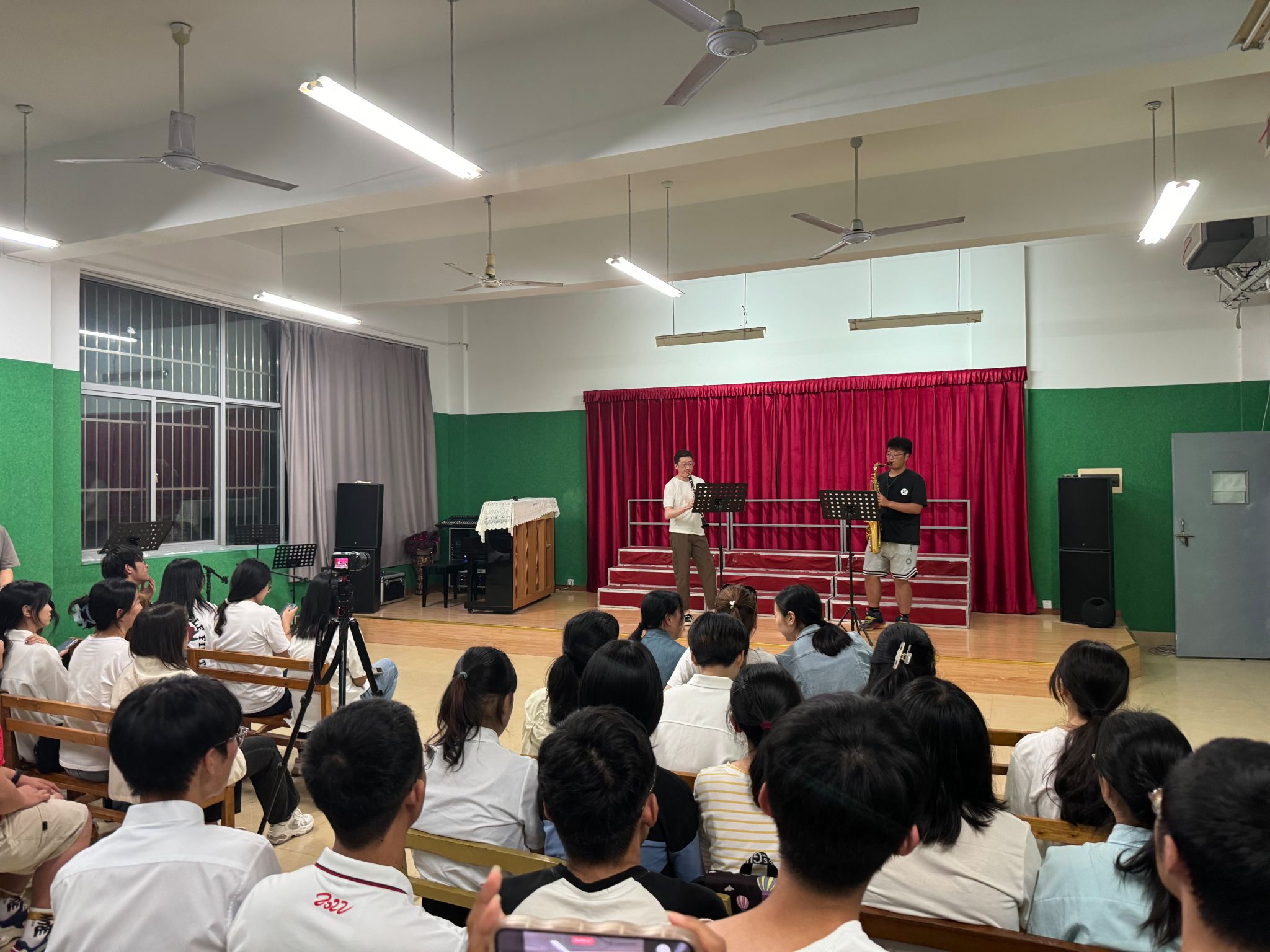 5月19日晚7点,金沙集团wwW3354CC主办的音乐实践课程——视唱练耳、合唱艺术、古琴演奏、萨克斯演奏四班联合汇报演出在翡翠湖校区九教104教室举行。此次演出由金沙集团wwW3354CC音乐教研室的老师们精心组织,旨在展示学生们在音乐课程学习中的成果,营造积极向上、格调高雅、健康文明的校园文化气氛。