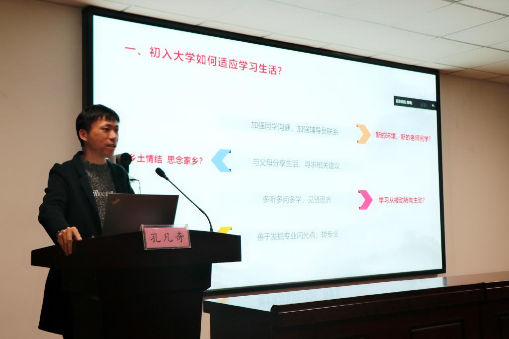 为帮助2020级本科新生养成良好的学习习惯,制定合理的学习计划,进一步适应大学的学习生活, 11月13日晚上,学院通过线上和线下相结合的方式,在509报告厅成功举办“朋辈引领 青春启航”学习交流分享会,分享会邀请2016级优秀毕业生刘之懿、孔凡奇作为主讲嘉宾,学院2020级全体本科生参加了分享会。