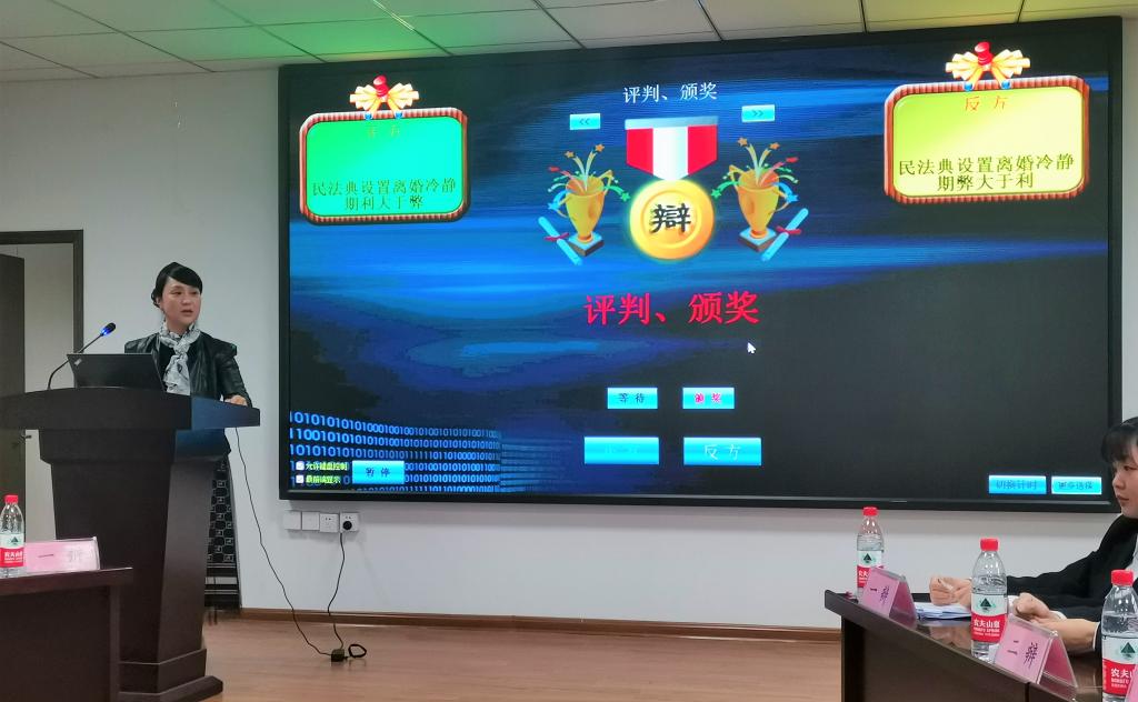 本次新生辩论赛共有来自学院2020级的11个辩论团队参加,历时一个月,经过初赛和复赛的激烈角逐,最终有8位优秀辩手进入决赛。决赛中,正反双方就“民法典设置离婚冷静期利大于弊/弊大于利”这一辩题展开了激烈精彩的辩论。正反双方从离婚冷静期的配套制度、家庭弱势群体的有效保护、婚姻自由和家暴等社会焦点问题出发,分别提出了自己的观点,既分析客观数据,又列举典型事例,并进行驳斥、互相质询、升华价值。在辩论场上,辩手们思维敏捷,踊跃发言,掀起了一个又一个的高潮,赢得了一次又一次的掌声,为场下观众带来了一场思辨盛宴。