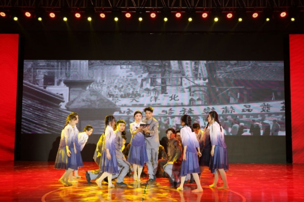 本次“一二·九”文艺汇演以“担当时代使命 投身强国伟业”为主题,由校党委学生工作部、校团委主办,校学生会承办。学院高度重视本次“一二·九”文艺汇演,广泛宣传,积极筹备,认真组织,在学院本科生和研究生中进行演员选拔,共选出24名学生。经过近两个月的刻苦训练,最终呈现出了一支震撼人心的舞蹈。本次学院推送的舞蹈作品《书的流离》,以抗日战争中中华民族文化传承史为背景,以书本为线索,讲述了抗日战争年代的大学生们在艰苦的内迁过程中,为知识的留存和文化的延续不惜献出自己生命的感人故事,展示了青年学子们勇担文化使命的高尚气节,讴歌了知识分子们不畏牺牲的傲然风骨,赞美了中华民族在战争流离中仍能保持高度文化凝聚的精神品格。表演过程中,伴随着紧张激烈的音乐,二十四名参演学生眼神坚定,动作有力,感情充沛,精彩的表现深深感染了现场的每一位观众。