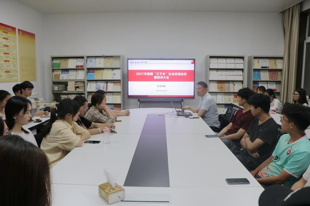6月25日晚,学院在410会议室召开2021年暑期“三下乡”社会实践动员暨培训大会。培训会现场共有学院辅导员、本科生、硕士生约40人参加,其他学生通过腾讯会议进行了线上参与。培训会由学院党委副书记顾安祥老师主讲。