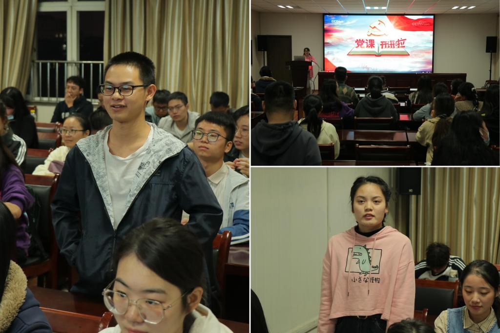 2021年11月2日晚7:00,学院组织21级研究生在学院509开展“习近平总书记关于弘扬爱国主义精神重要论述”专题讲话和观看“《党课开讲啦》第一期《党的光辉历程》”团支部活动,会议由20级研究生团支部书记陶天蓉主持,全体团员参加。