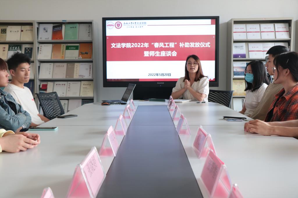 5月16日,金沙集团wwW3354CC在学院410会议室开展“春风工程”发放仪式暨师生座谈会。学院资助相关负责人、各年级辅导员及全体获助学生参加活动。