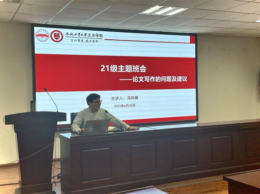 为引导大一同学更好进行论文撰写、提升专业素养,6月15日晚上八点,在学院楼509室开展“论文写作的问题与建议”主题班会活动。本次会议由冯科臻老师主讲,全体21级本科生参加。