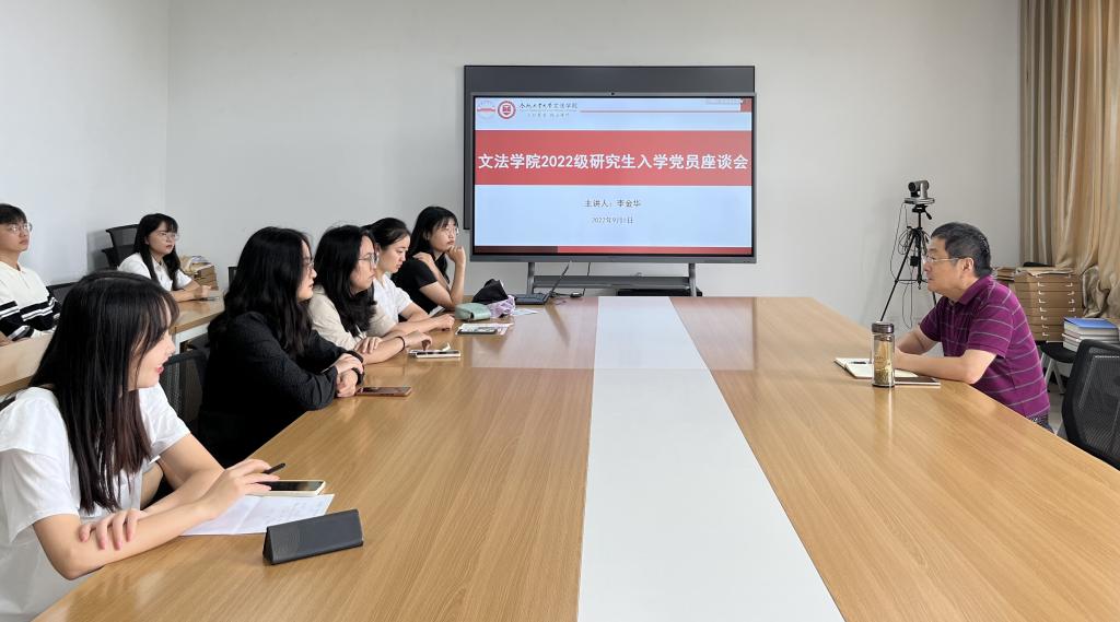 9月1日上午,学院2022级硕士研究生党员座谈会在学院310召开。座谈会由学院党委书记李金华主持,2022级硕士研究生党员共17名同志参加本次会议。