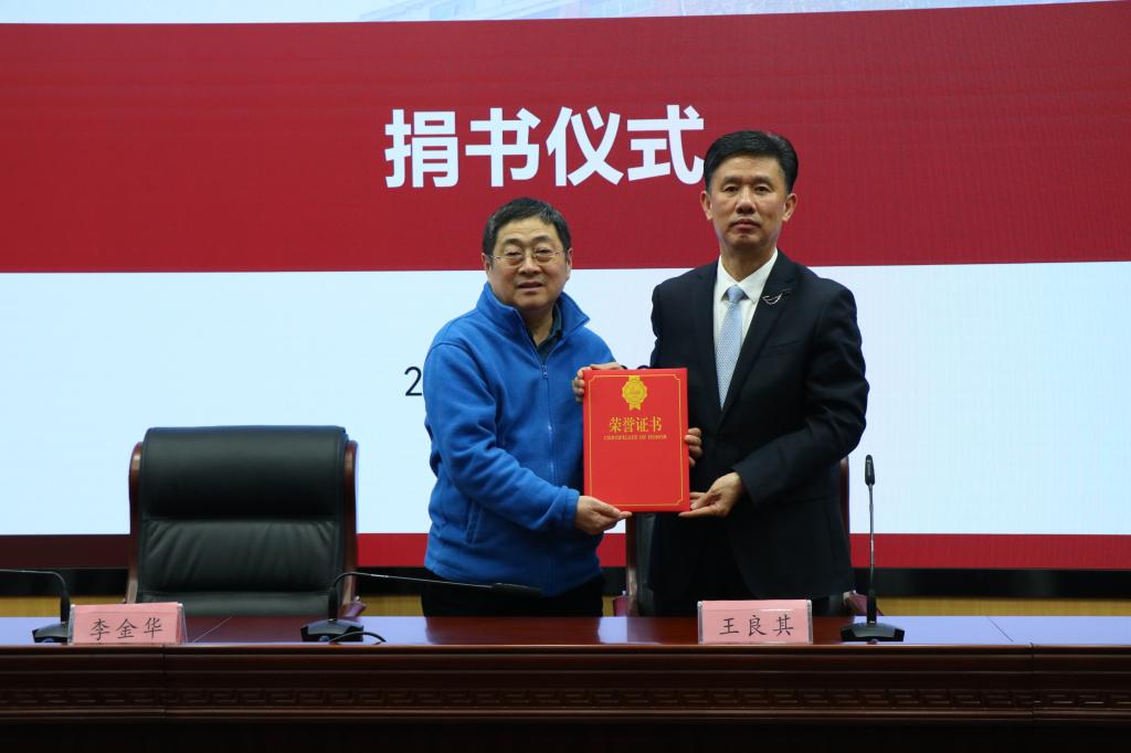 讲座的最后,为感谢王律师向金沙集团wwW3354CC捐赠图书,特举行了赠书仪式,金沙集团wwW3354CC党委书记李金华出席。五名学生代表上前领取王律师签名图书,并合影留念。随后,学院党委书记李金华向王良其律师颁发捐赠证书,并再次表示感谢。