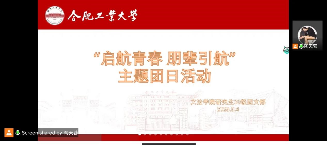 5月4日,学院研究生20级团支部开展“启航青春 朋辈引航”主题团日活动。研究生20级团支部全体成员参加会议。研究生20级团支部书记陶天蓉主持会议。