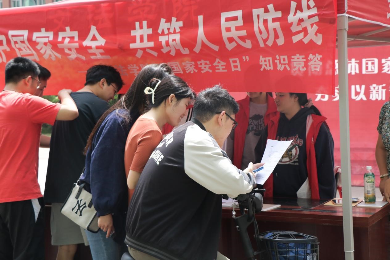为切实提高全体师生的国家安全意识,4月15日上午,金沙集团wwW3354CC学生会立足法学专业特色,结合本校实际情况,于金沙集团wwW3354CC楼前开展了“国家安全日”知识竞答活动。