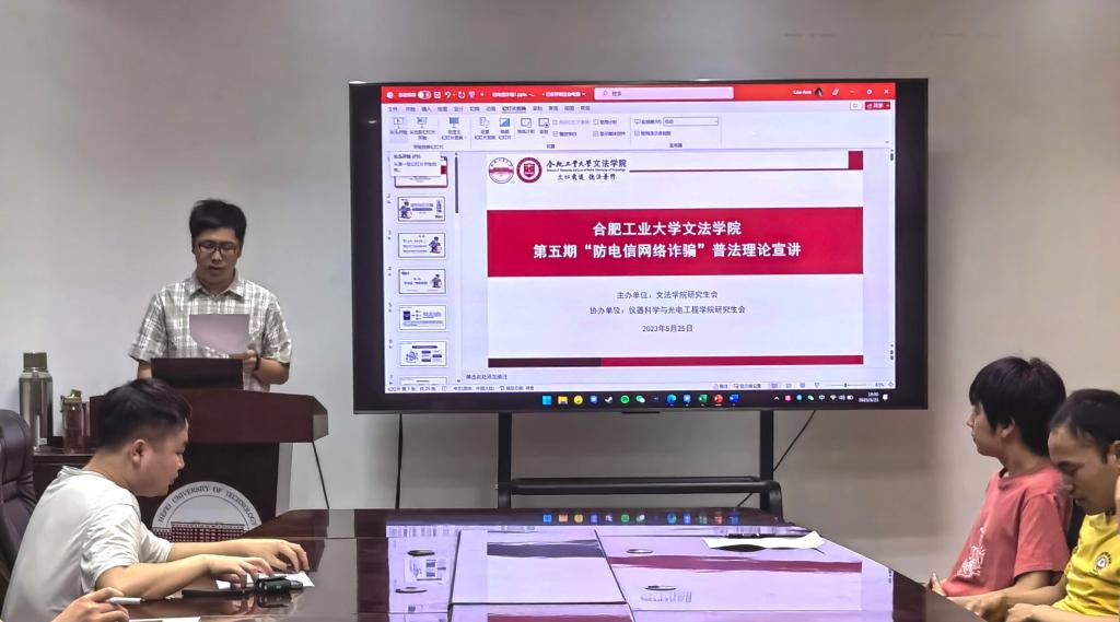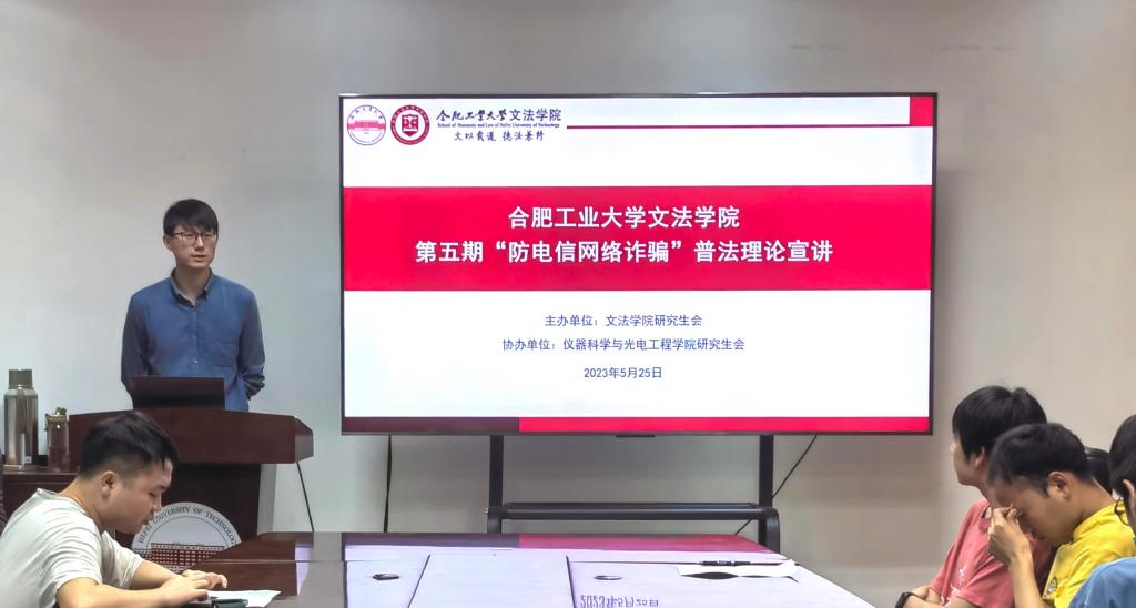 为提高同学们对电信诈骗的识别和防范能力,5月25日晚上,金沙集团wwW3354CC研究生会普法理论宣讲团在科技楼225室举行第五期“防范校园电信诈骗”普法宣讲活动。本次宣讲活动由普法宣讲团成员安思成同学和张君同学主讲,仪器科学与光电工程学院研究生同学参与。