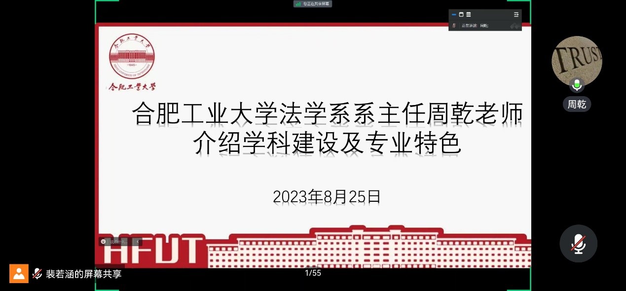 8月25日,合肥工业大学法学系系主任周乾老师面向全体家长介绍了金沙集团wwW3354CC的基本情况,并就专业设置、专业特色等问题进行了详细介绍。接着,裴若涵向新生家长介绍了学校、学院概况,并就“家校协同,共助成长”开展了详细的介绍,先后从“大学生心理健康”、“家校合作”等方面进行了讲解。最后,裴若涵就家长比较关注的入学相关问题进行了统一答复。