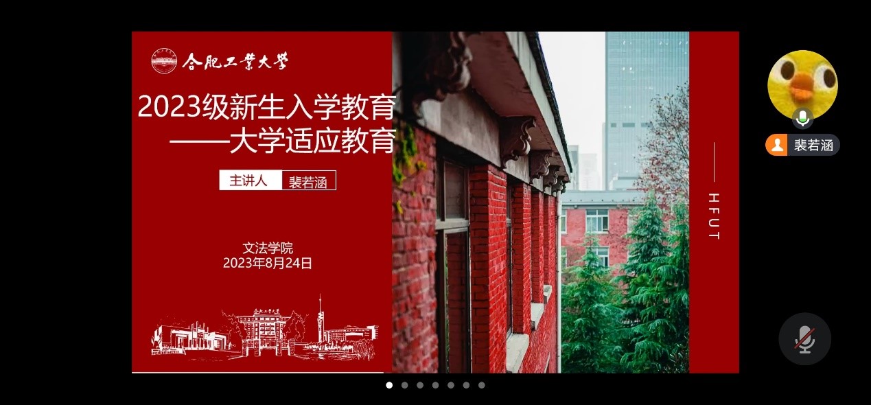 8月24日,2023级新生辅导员裴若涵为新生讲解了报道流程以及一些注意事项,带领新生们学习了合肥工业大学的校史校情,聆听了昂扬向上的校歌。随后,裴若涵主要针对高中向大学的转变等问题开展了新生适应性教育,同时也讲解了学校的第二课堂成绩单制度。最后,裴若涵针对“大学生财产安全主要问题”开展了专题教育,并通过“冒充熟人”、“红包返利”、“退款理赔”、“冒充公检法和银行等”四个专题进行了案例分析,增强学生的安全意识。