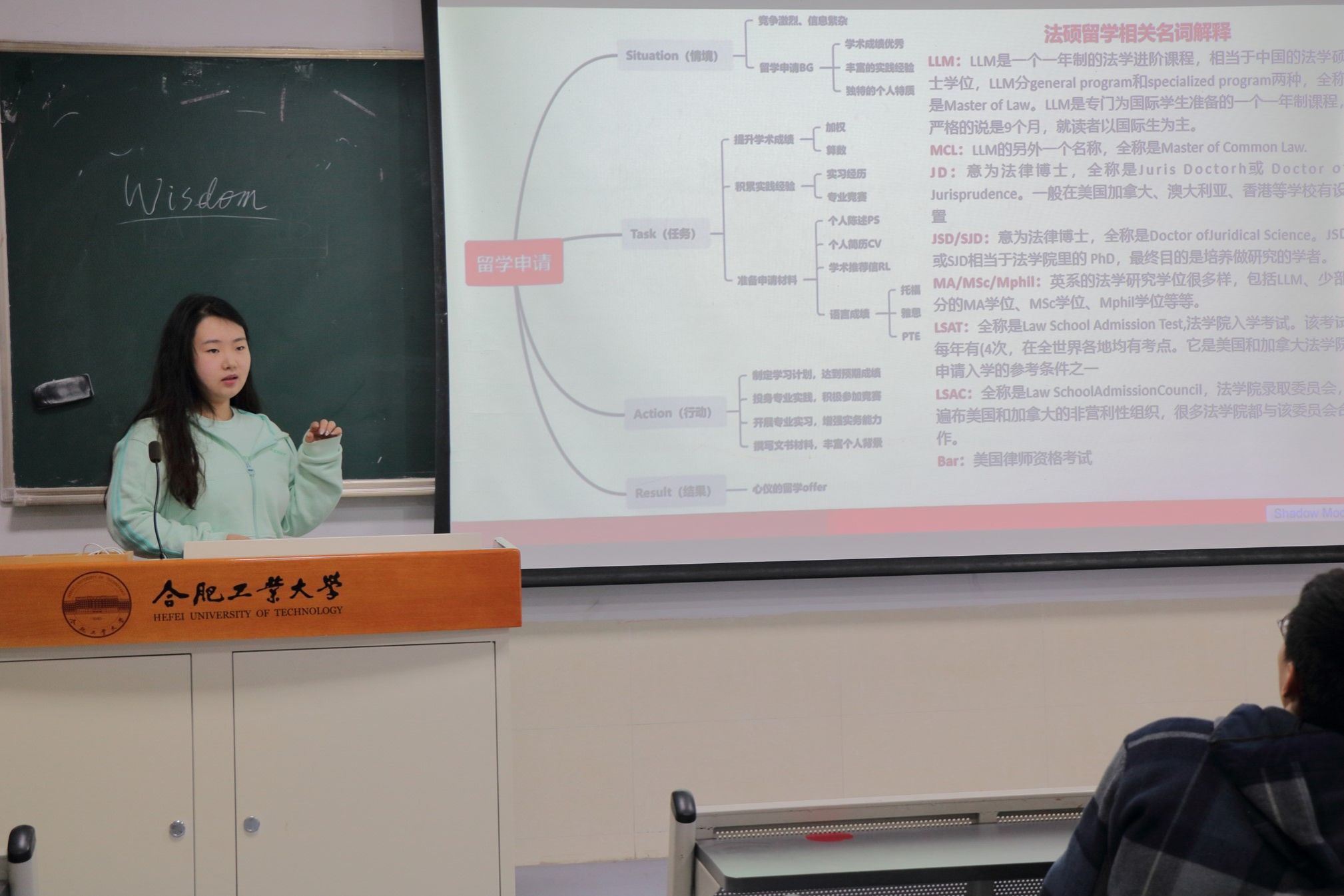 会议伊始,主持人曹亦凡首先介绍了此次分享会的目的、背景,以及主讲嘉宾的个人履历。接着,全国大学生职业生涯规划大赛省级二等奖获得者吕佳佳同学以个人参赛作品为例,向同学们分享了大学时期参加竞赛的经验,提出答辩PPT内容要与个人独特经历有关、榜样的选取要适当、简历制作技巧等建议。随后,获得多所国外大学offer的张静茹同学结合自己申研经历,向同学们科普了一些国外院校的法学科类型、国内认可度、录用标准等知识,分享了留学院校筛选的方法,同时,根据自己申研心得与历程,鼓励同学们尽早准备,并且积极参加社会实践与实习,丰富自己的履历。提问环节,同学们积极交流讨论,提出疑问与困惑,主讲人耐心解答。会后,同学们纷纷表示认识到未来规划的重要性,之后会积极参加学科竞赛与社会实践,更好的为未来做准备。