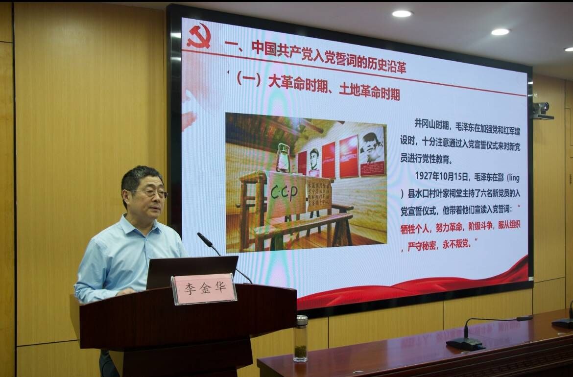 4月15日,金沙集团wwW3354CC在学术会议中心二楼报告厅开展以“从中国共产党入党誓词说起”为主题的专题党课,金沙集团wwW3354CC党委书记李金华主讲,金沙集团wwW3354CC发展对象班及本科生支部全体党员参加。