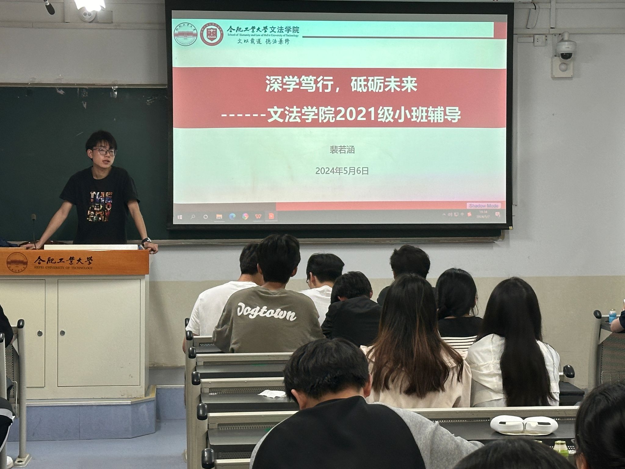 首先,裴若涵首先对两会的基本情况进行概述,详细介绍了两会的议程、主要成果以及领导人的重要讲话。通过对政府工作报告的解读,同学们对国家当前的经济社会发展情况有了更为直观的认识。然后,他还特别强调了两会期间提出的教育改革措施,如加强高等教育内涵建设、推动职业教育发展等,这些内容与大学生的学习生活息息相关,引起了同学们的广泛关注。最后,裴若涵老师启示同学们将两会精神与今后的人生发展结合起来,时刻践行两会精神。