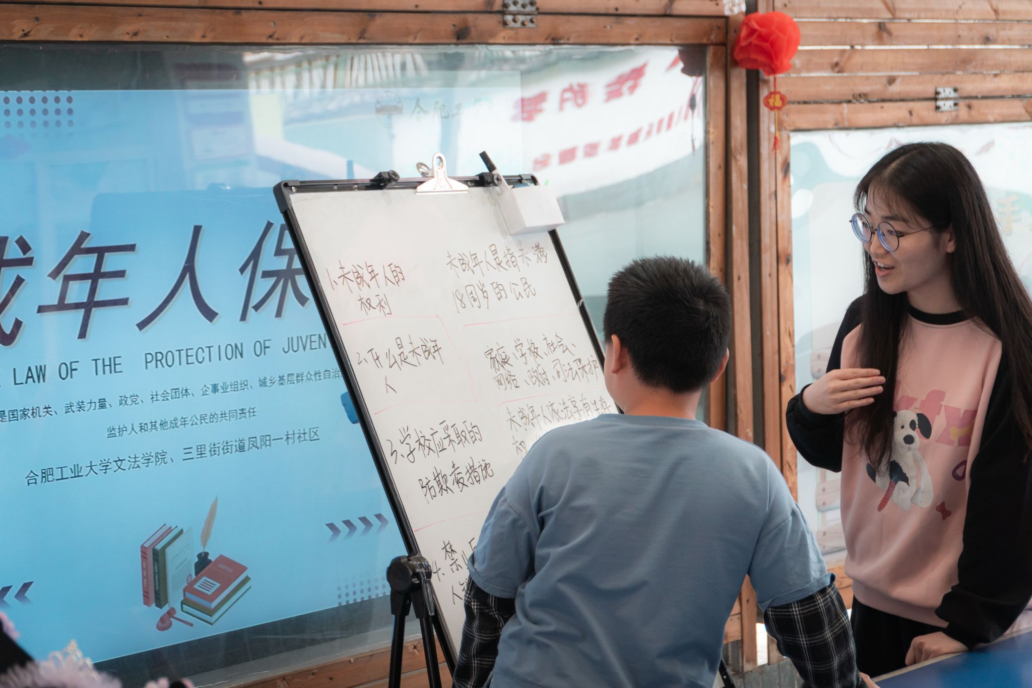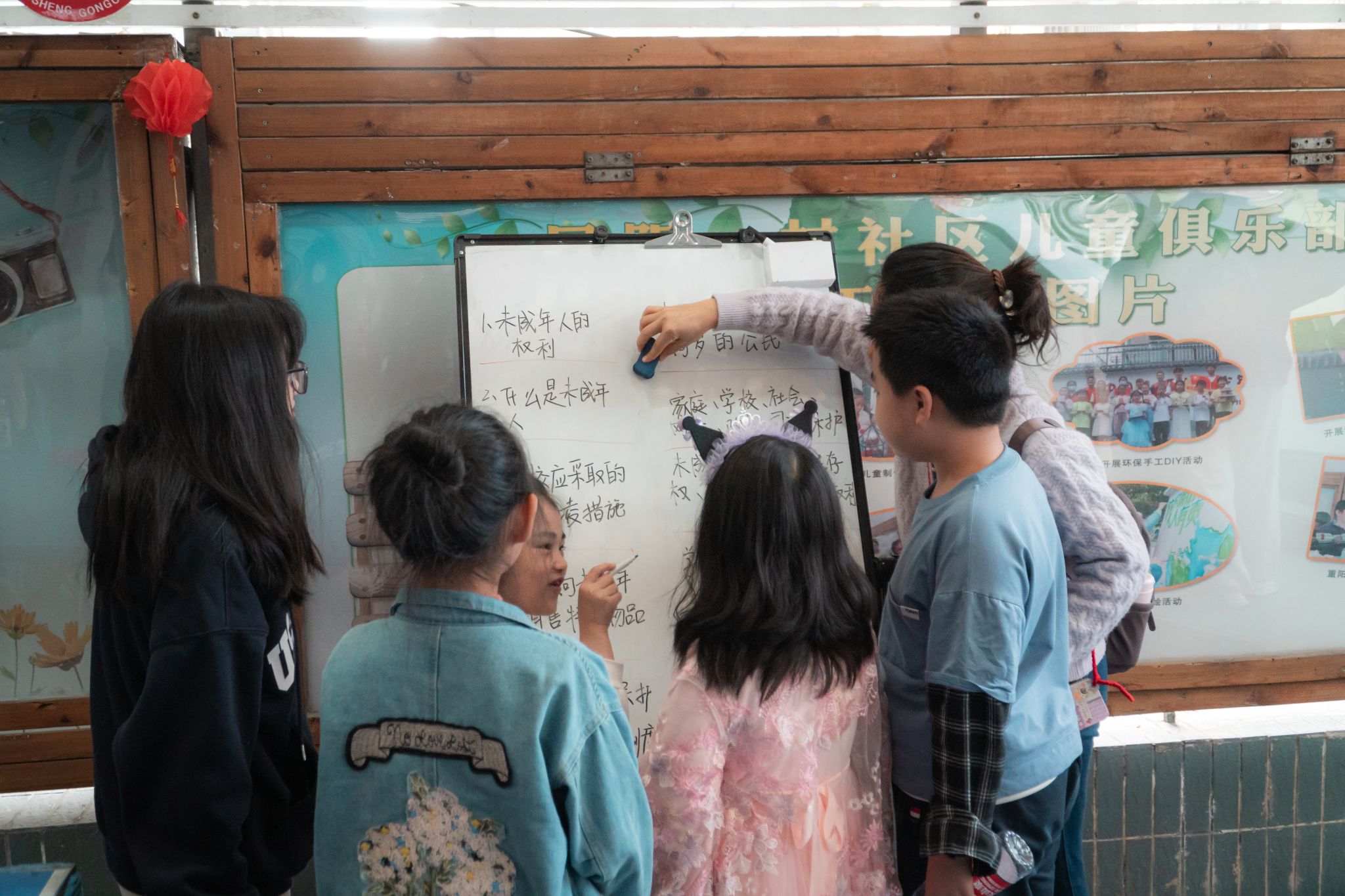 活动伊始,杨晓欢同学从“未成年保护”的概念、维权途径等多个方面展开进行普法宣讲,通过生动的案例和通俗易懂的语言,让孩子们深刻地认识到法律在保护未成年人权益方面的重要作用以及在权益受到损害时如何正确寻求帮助。随后,预备党员班同学们寓教于乐,通过设计“对对碰”和“你问我答”两个小游戏,让孩子们在轻松的氛围下进一步认识和理解相关概念。