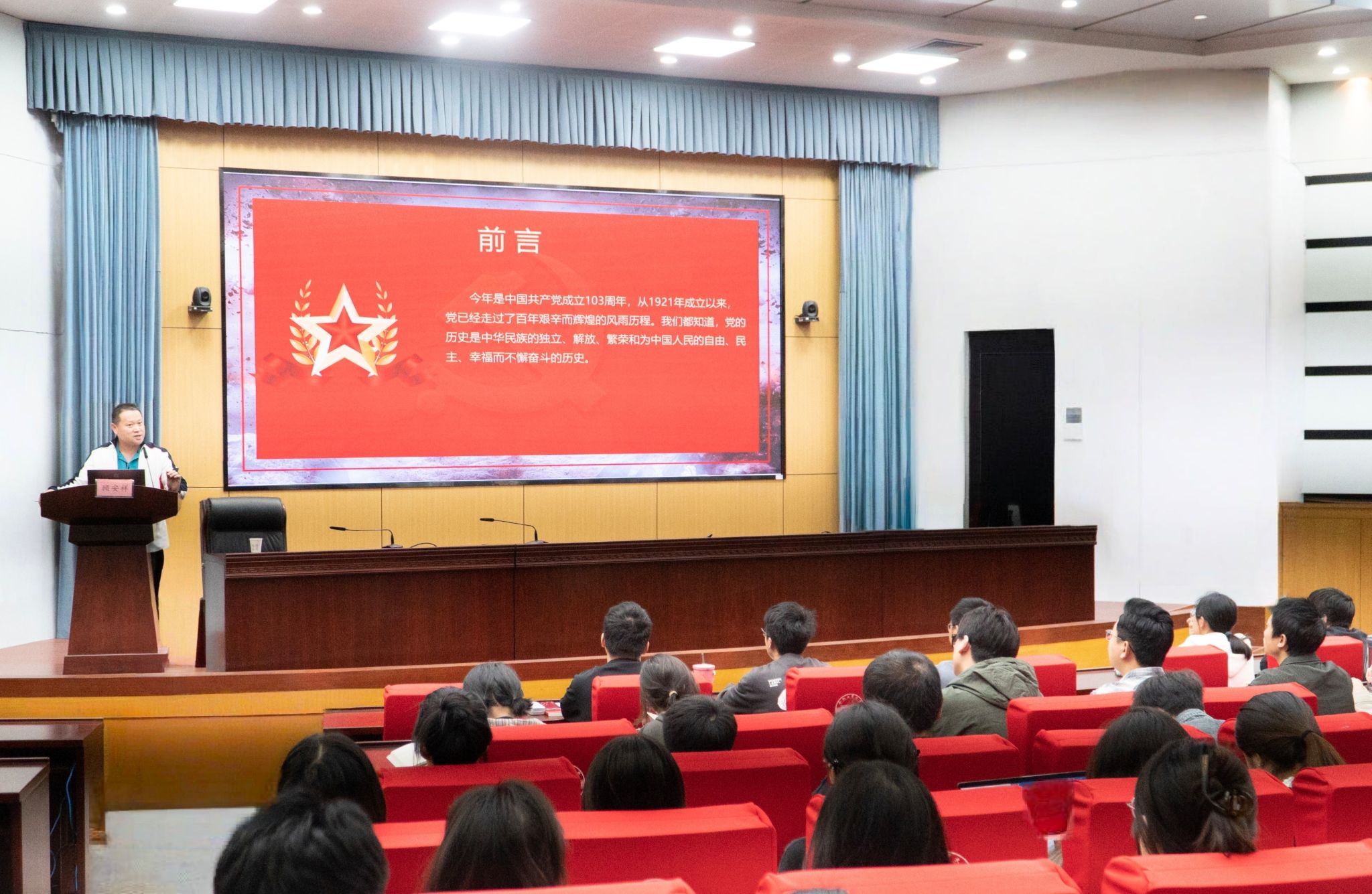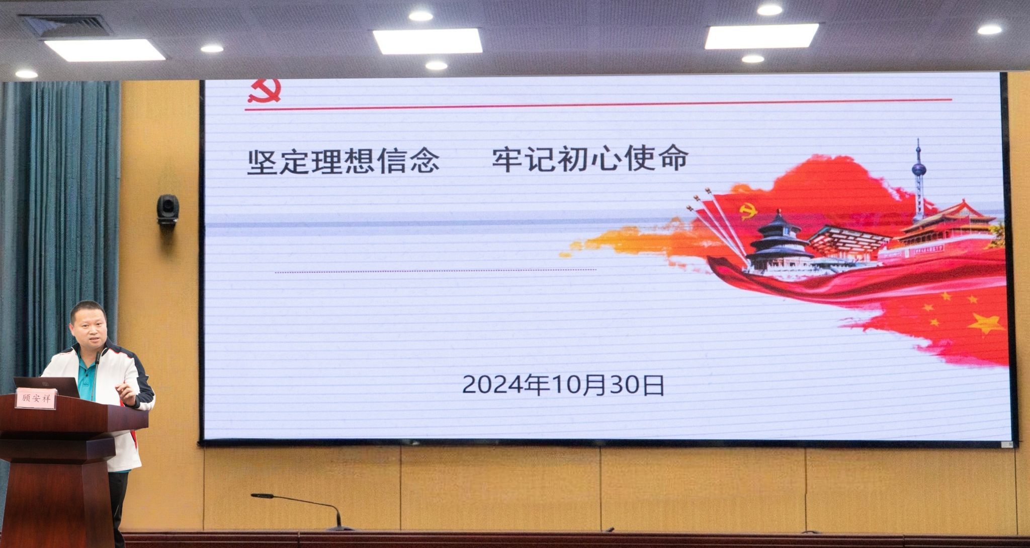 本次党课,院党委副书记兼纪委书记顾安祥作了题为《坚定理想信念,牢记初心使命》的党课讲座。顾书记首先强调了学习党史的重要性,他指出,党的历史是最生动、最有说服力的教科书,是我们不忘初心、牢记使命的重要源泉。随后,顾书记详细带领同学们系统回顾了中国共产党从一大到二十大的光辉历程,深入解读了各阶段的理论思想成果。顾书记围绕着中国共产党一大到二十大的重点内容展开了讲述,每一次党代会都是党的历史发展中的重要里程碑,从一大确立党的基本纲领,到十九大提出新时代中国特色社会主义思想,每一次会议都标志着党的理论创新和实践发展的新高度。特别是改革开放以来,党的理论和实践不断创新,引领中国取得了举世瞩目的成就。此外,党课特别强调了习近平新时代中国特色社会主义思想的时代价值和实践意义。全体入党积极分子要深刻领会其核心要义、精神实质、丰富内涵、实践要求,切实把思想和行动统一到党中央决策部署上来。最后,顾书记对全体入党积极分子提出了明确期望,希望各位同学持续加强党史学习,不断提高政治判断力、政治领悟力、政治执行力,将学习成果转化为工作动力和实际成效,立足本职岗位,勇于担当作为,为实现中华民族伟大复兴的中国梦贡献青年力量。