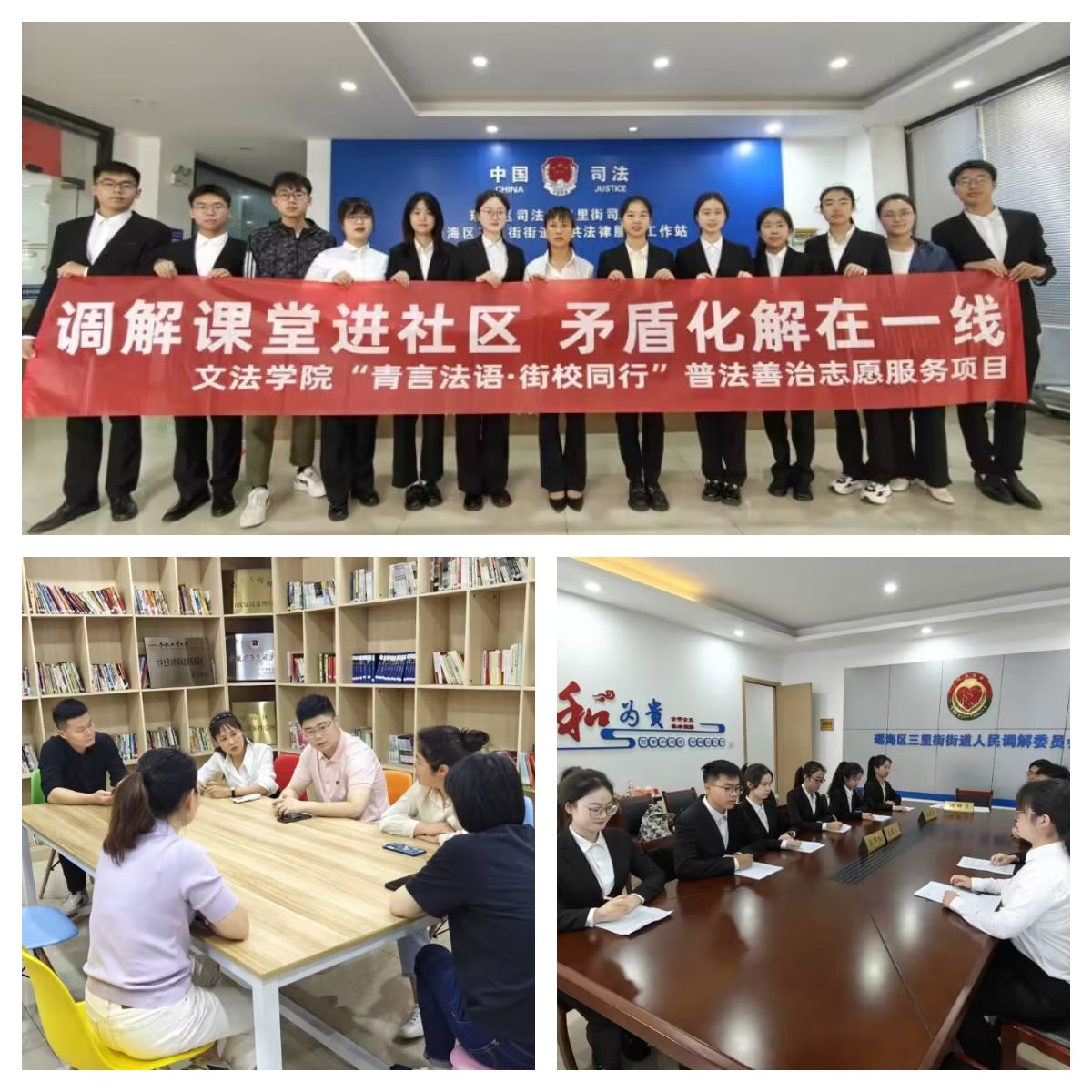 本次活动也是学院“青言法语·街校同行”普法善治志愿服务项目内容之一,活动以矛盾纠纷化解为“结合点”,把调解课堂“搬进”街道社区,旨在让法学生聚焦社会实际问题,亲身参与基层一线中经常发生的各类矛盾纠纷调解,以学促践、以践促研、以研致用,把实践成果转化为理论新思路,引导更多法学生充分发挥专业所学,用实际行动彰显了新时代青年的责任和担当,为促进平安社区、共建和谐社会贡献一份力量。