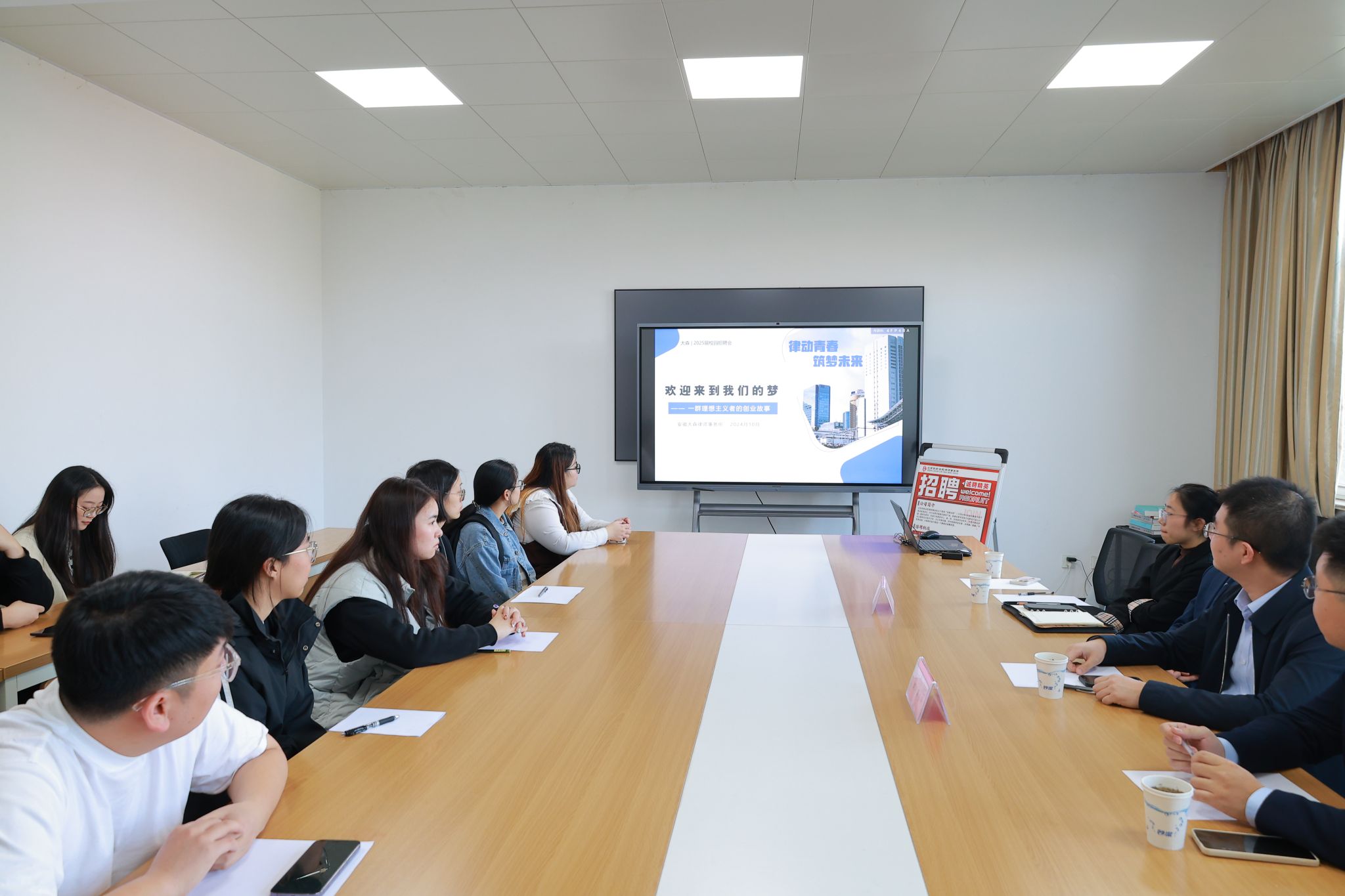 为丰富学院学生的学术视野,扩展学生就业实习平台,促进理论与实践的深度融合,11月11日,在学院楼310会议室开展了第三期专场招聘会暨法律实务经验交流分享活动,学院毕业班学生参与此次活动。