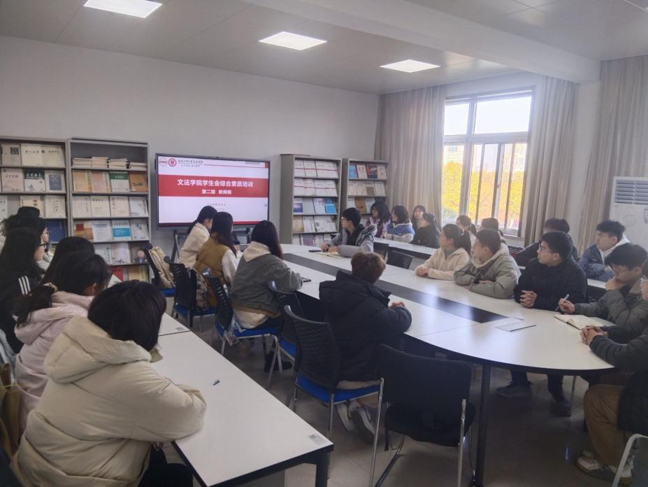 培训内容全面而深入,围绕新闻稿的结构布局、信息采集技巧、语言表达艺术等多个维度展开。首先,李豪向学生会成员分享往年各类优秀新闻稿,包括会议类、活动类、竞赛类、表彰类等,每一种类型都有其独特的撰写技巧与风格要求,引导同学们规范撰写新闻稿,确保新闻稿的精准传达。接着李豪讲解了学校、学院以及班级新闻稿撰写时的异同点及各自的注意事项,其中特别提到特定活动新闻稿“前置化”要求,保持活动与新闻稿产出的同步性,提高宣传效果。最后,李豪向大家分享了撰写新闻稿时的常见问题,提醒同学们注意错别字等问题。培训尾声,他鼓励同学们勇于实践,勤于笔耕,将所学知识转化为实际行动,以青年之声,讲好文法精彩故事,共同为学院的新闻宣传工作贡献力量。