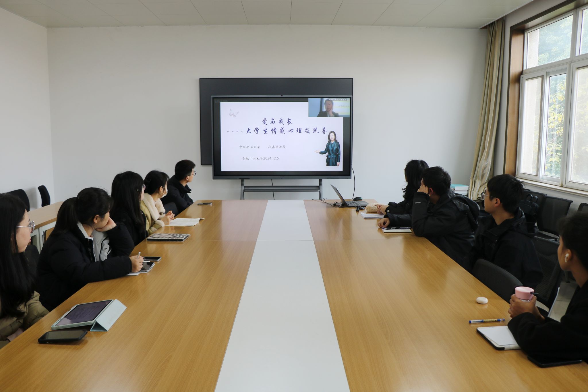 为了引导学生树立正确的恋爱观,提升同学们的自爱与爱人能力,12月5日下午,我校在屯溪路校区管理新大楼第一学术报告厅举办以“爱与成长——大学生情感心理及疏导”为题的心理讲座。此次讲座采取线上与线下相结合的形式,学院各寝室心理气象员同步在学院楼310会议室观看直播。