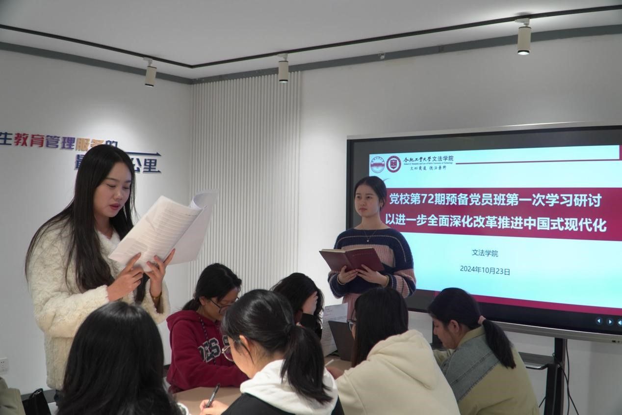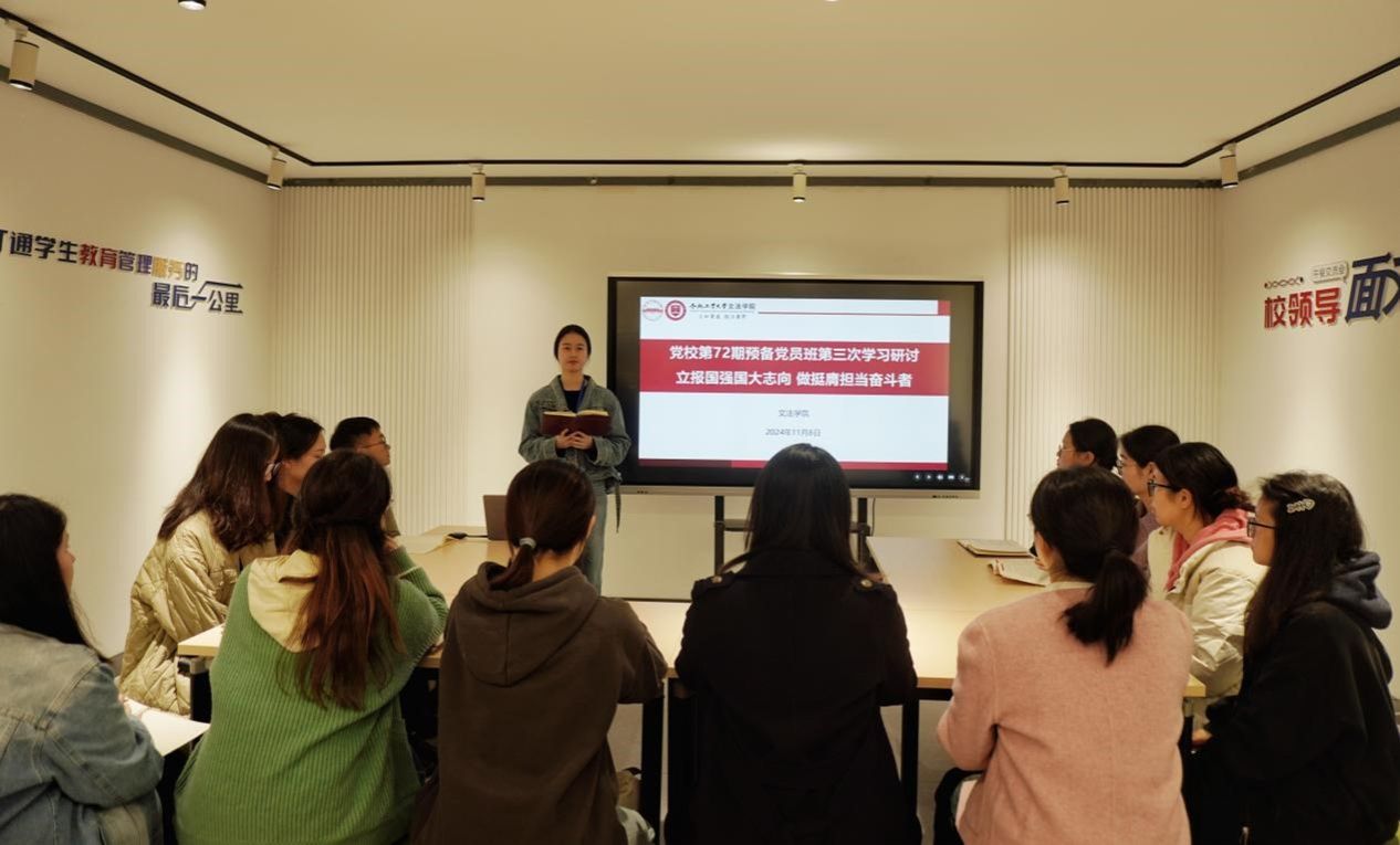 为深入学习党的二十届三中全会精神,加强同学们的党性修养,引导同学们树立正确的观念与目标,根据党校预备党员班学习要求,学院第72期发展对象班于七号楼二楼学生社区开展了三次理论学习研讨活动,预备党员班全体学员共同参与。
