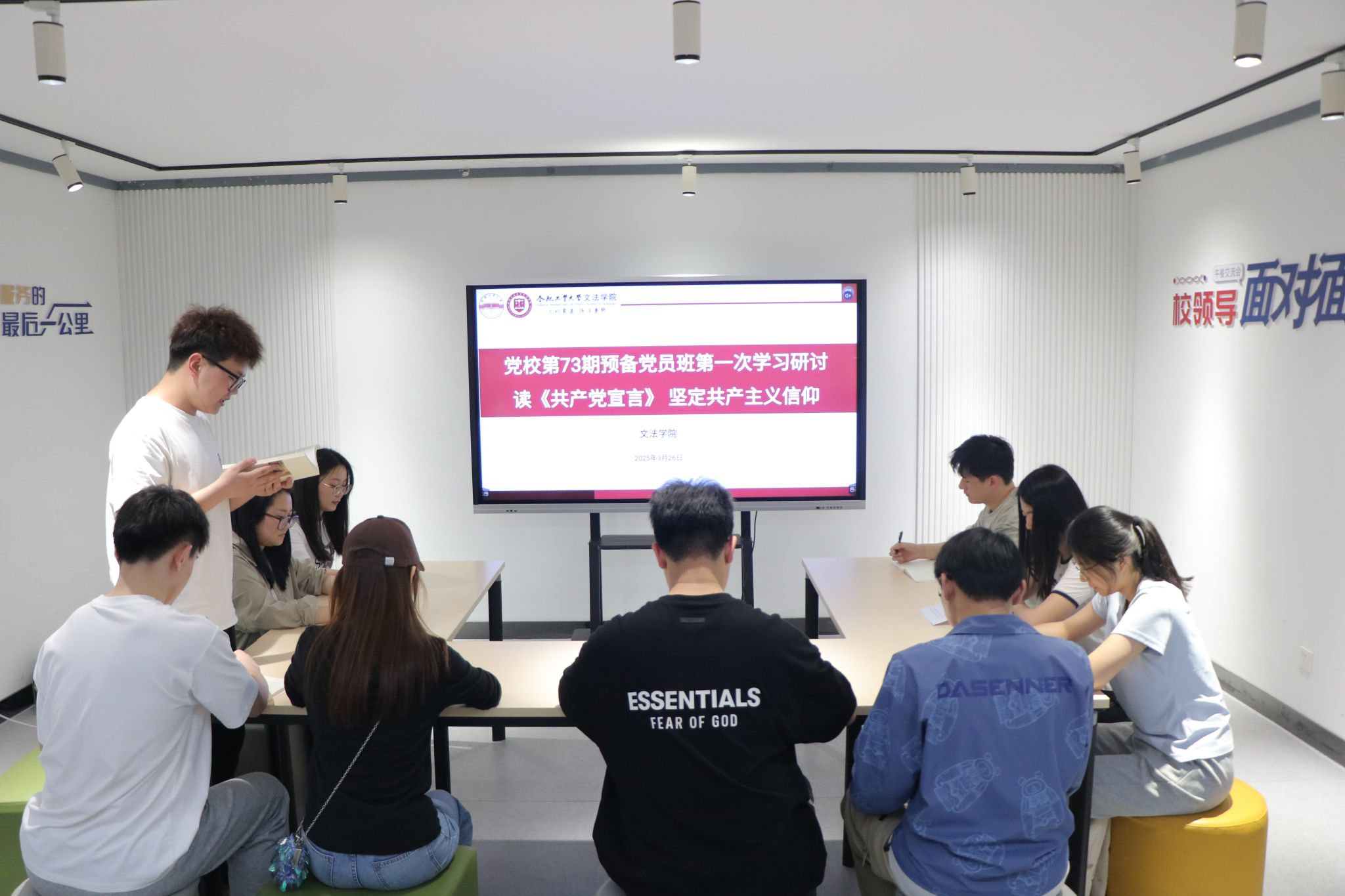 提高同学们的政治觉悟和理论水平,3月26日,学院党校第73期预备党员班在七号楼学生社区开展主题为“读《共产党宣言》,坚定共产主义信仰”的理论学习研讨活动,预备党员班全体成员参与本次活动。