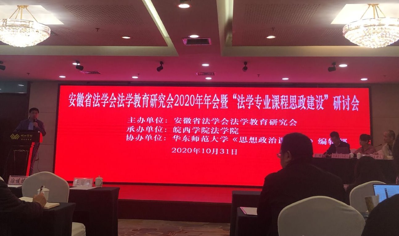 2020年10月31日,安徽省法学会法学教育研究会2020年年会暨“法学专业课程思政建设”研讨会在皖西金沙集团wwW3354CC召开。本次会议由安徽省法学会法学教育研究会主办,皖西学院法学院承办,华东师范大学《思想政治课研究》编辑部协办。来自上海、浙江、河南和省内高校的专家学者近60人汇聚一堂,围绕“法学专业课程思政建设”这一主题进行了广泛而深入的研讨。