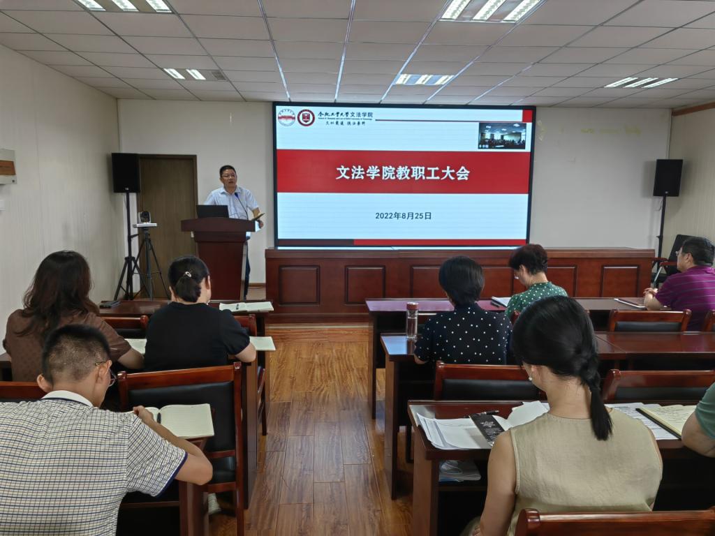 8月25日下午,学院在院509报告厅召开新学期全院教职工大会,学院领导班子成员、全体教职工参加会议。会议由院党委副书记、纪委书记顾安祥主持。