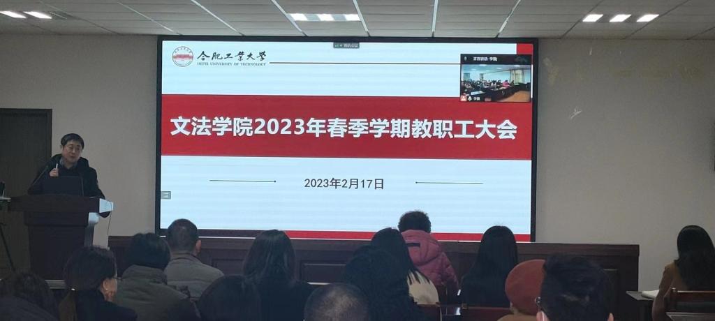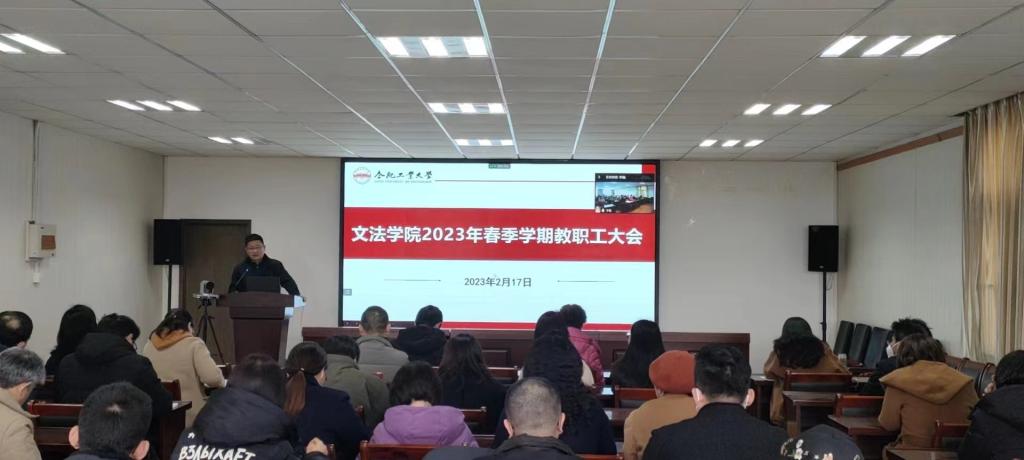 院长吴椒军传达了学校2023年寒假工作研讨会议精神和学校贯彻落实“一改两为”理念即要坚定不移改进工作作风,为广大师生办实事,为立德树人优环境,全面提升工作效能,深入推进学校高质量内涵式发展。结合学校2023年工作任务,以促进学院高质量发展为主题就学院教学与课程思政、科研、专业学科建设、人才培养和学院治理体系提出了目标要求。