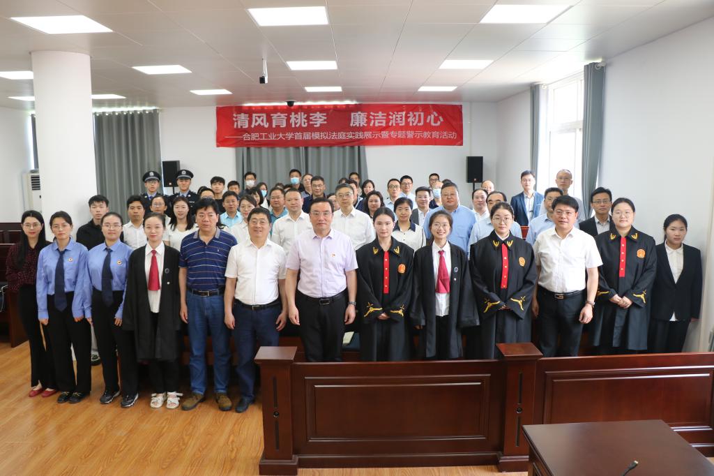 为深入学习贯彻习近平新时代中国特色社会主义思想,在主题教育中强化纪检监察干部党性修养和法纪意识,深入推进学校纪检监察干部教育整顿。5月25日,由校纪委主办、金沙集团wwW3354CC承办,以“清风育桃李,廉洁润初心”为主题的校首届模拟法庭实践展示暨专题警示教育在屯溪路校区模拟科技法庭实验室举办,校党委副书记、纪委书记施永红出席并讲话。