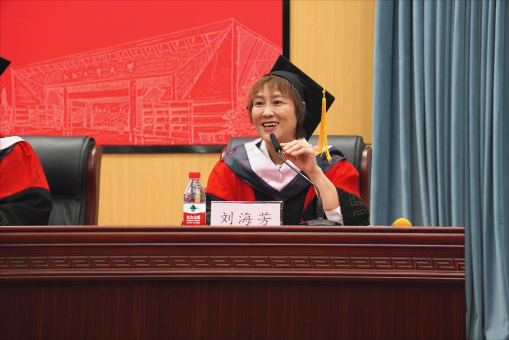 法学系刘海芳副教授作为教师代表,对同学们即将踏上新的征程的毕业生们表达了美好祝愿,并希望大家继续以学生的心态去应对生活、工作,以广阔视野和热忱的探索精神去迎接新的生活。
