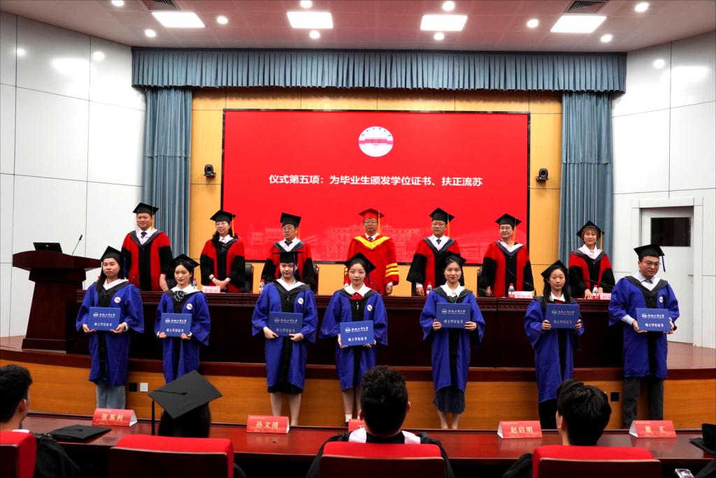 学院领导班子、教师代表、各年级学生代表以及全体2023届毕业生参加仪式。