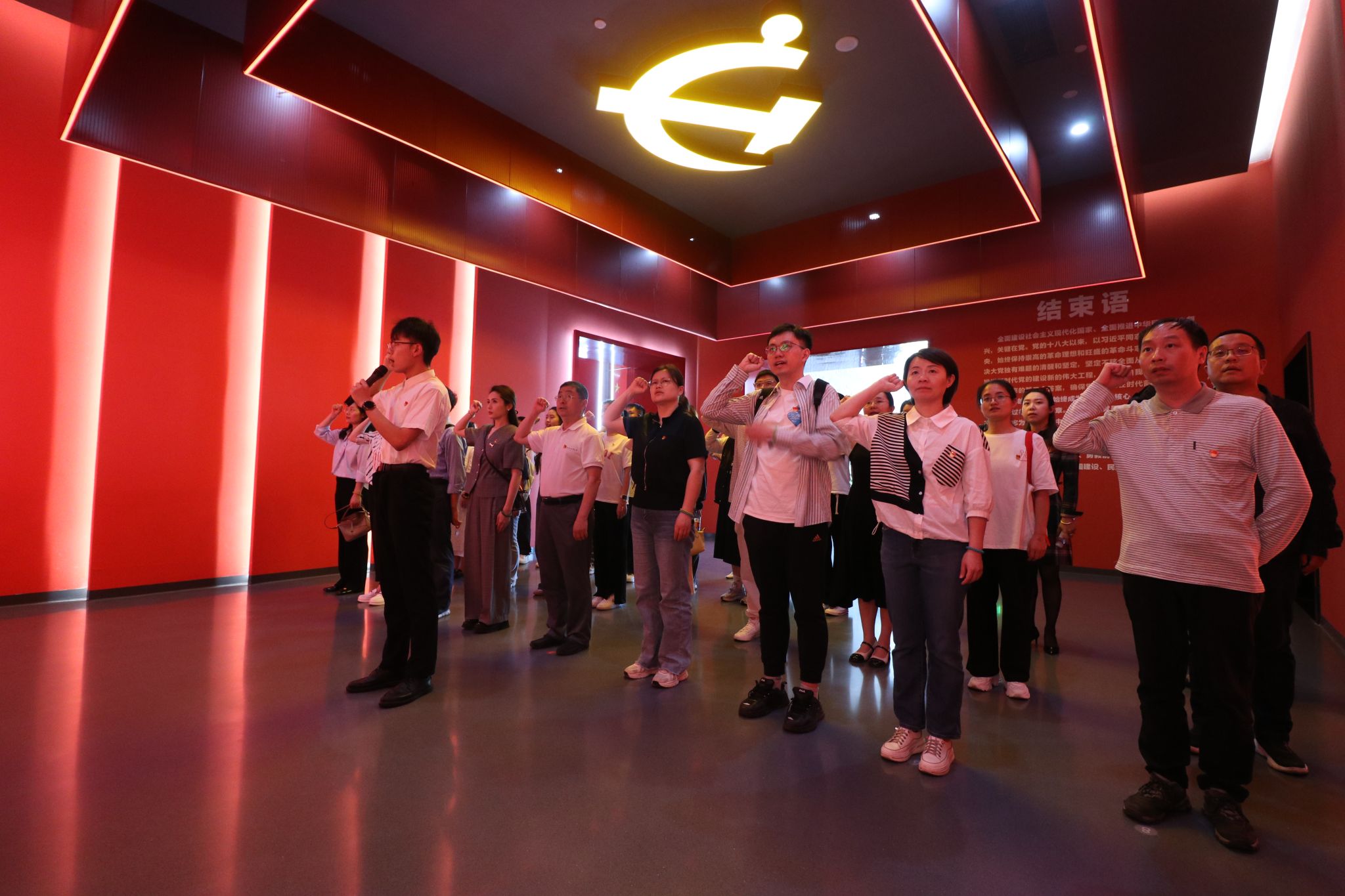 在讲解员的带领下,全体人员认真观看了专题片《永远在路上》,依次参观了“纪律立党·从严治党”“廉润江淮·清风扬帆”“以案为鉴·警钟长鸣”“不忘初心·永葆清廉”四个展厅。展厅通过展板、图片、视频、雕塑、互动体验、场景还原等形式,全方位展示中国共产党筚路蓝缕的百年纪律建设史,展现我省全面从严治党、党风廉政建设和反腐败斗争成果。一件件让人触动深刻的警示案例,让全体人员感受到了违纪违法党员领导干部从初心迷失到最终走上歧途的堕落与悔恨,提醒着每一位党员要以案为鉴、时刻警醒、永葆清正廉洁本色。参观结束后,全体党员在安徽省党风廉政教育馆宣誓厅现场重温了入党誓词,牢记在党旗下的铮铮誓言。
